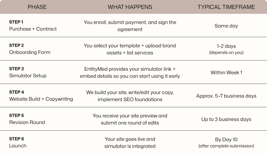 You’ll get a clear, professional website foundation to increase visibility and a powerful AI experience that gives prospective patients a reason to engage and take the next step.